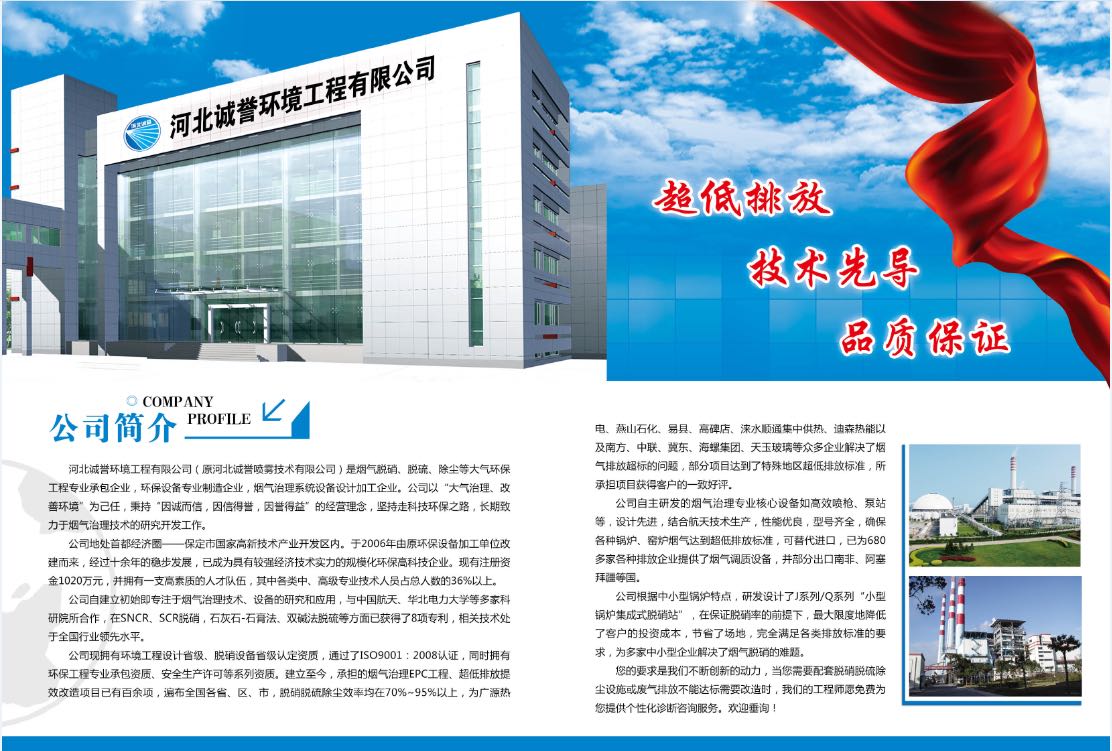 公司地處歷史文化名城——保定市,環京、津位置,國家級高新技術產業開發區內,與中國航天、華北電力大學等多家科研院所有著密切交流與合作。公司注冊資金6120萬元,設立有大氣環境技術中心、誠譽環境設計研究院、誠譽監測站,擁有一批高素質的人才隊伍,其中各類中、高級專業技術人員占總人數的36%以上。